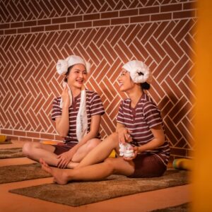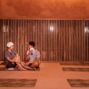 Với tổng diện tích gần 1.000m², 2 khu Sauna được trang bị bể tắm nóng – lạnh, khu tắm đứng – ngồi, dịch vụ tẩy da chết cùng phòng xông khô và xông ướt, đáp ứng mọi nhu cầu thư giãn. Đây là không gian lý tưởng để thả lỏng cơ thể, xua tan mệt mỏi và “chill” quên lối về sau những giờ làm việc căng thẳng.